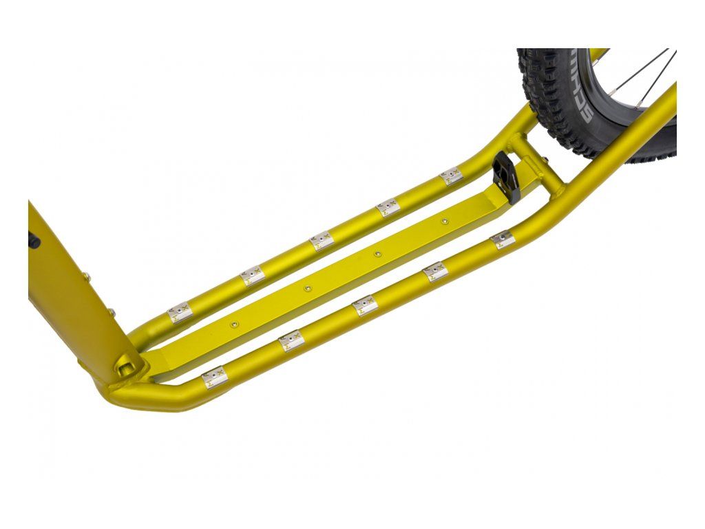 Model KOSTKA TRIP MAX DOG (G7) představuje vrchol sedmé generace koloběžek, která v sobě koncentruje 25 let zkušeností a neustálého vývoje. Tato koloběžka byla stvořena pro ty nejnáročnější výzvy, což potvrzuje i její úspěšné absolvování extrémního závodu 2020 miles Adventure. Její srdce tvoří unikátní rám se zvýšenou tuhostí a aerodynamickým profilem ve tvaru kapky, který nejen snižuje odpor vzduchu, ale také poskytuje zvětšený prostor pro jezdce a výjimečný jízdní komfort v libovolném terénu.